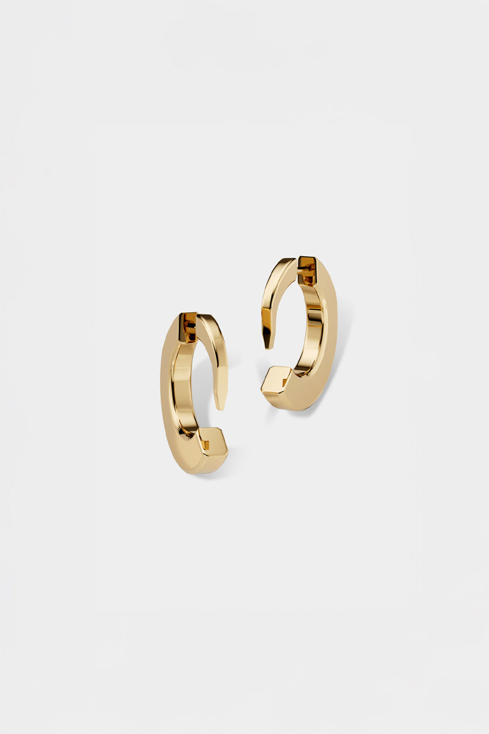 A pair of open arcs, cut with a single, decisive edge. Crafted in polished 18K yellow gold.